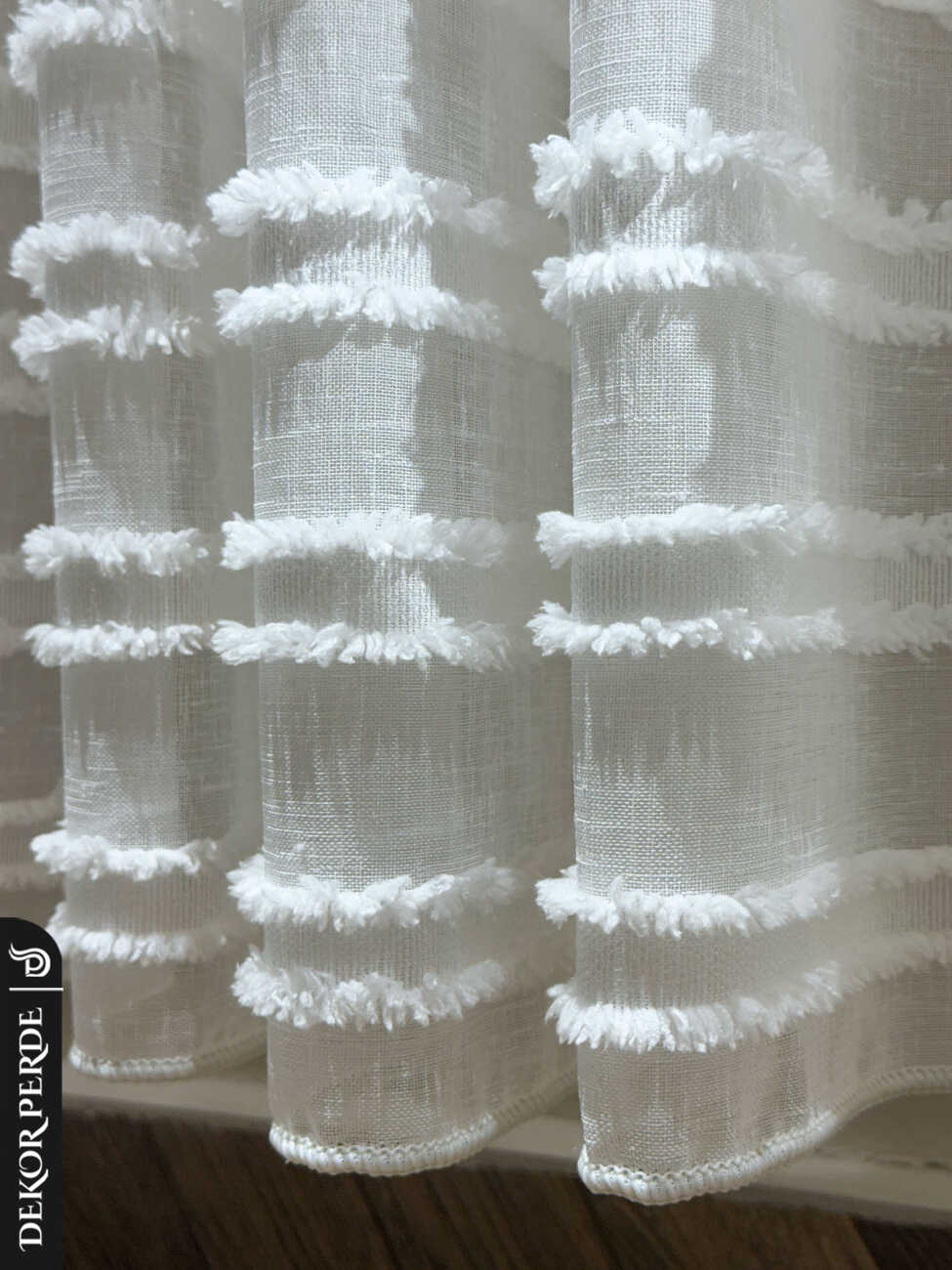 Gramajlı ve dayanıklı üründür. Ütü istemez ve kırışma yapmaz. 30 Derece perde yıkama modunda çok sıkma yapmadan yıkayıp nemli bir şekilde asabilirsiniz. Bu ürünü yıkama torbasında yıkmanızı tavsiye ederiz. Tül perdenin üst kısmını bir ip yardımıyla bağlayınız ve yıkama torbanızda yıkayınız. Tül perdeyi yıkamak için indirirken rayın içindeki ipli düğmeleri rayın içinde bırakınız perdeyle beraber indirmeyiniz. İpli düğmeler perde klipslerden rahatça çıkar.